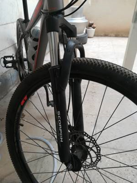 2. اندازه‌گیری Sag:حلقه‌ی لاستیکی روی شاخه‌ی کمک را پایین ببر، روی دوچرخه بنشین، سپس نسبت فشرده‌شدن به طول کلی را اندازه بگیر (باید بین ۲۰–۳۰٪ باشد).